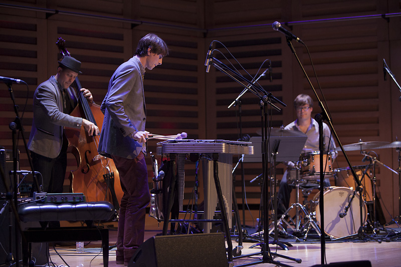 The new album features more electronics than previous Cloudmakers releases, and I was curious how deliberate that was. “It was definitely intentional. From the start of the writing process, I had certain tunes in mind that would benefit from synths, electric bass, and live processing on drums. I also used some acoustic preparations on the vibraphone.”