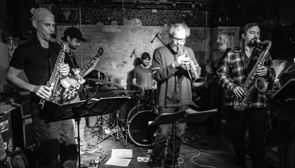 “It’s very much something that grew out of the dynamic of the band and out of the specific way that these people work together,” Klein explains. The group’s sound is shaped by collective experience—by playing together in different contexts, developing an intuitive sense of what works, and being willing to discard ideas that do not serve the ensemble’s identity. “It’s about trying to understand the point of a composed cell or a starting point and then blowing life into it… from whatever direction it needs. That can work both ways. It could be an improvised starting point and it needs structure. So we insert structure or it could be a composed starting point and it needs freedom or looseness and we insert improvised looseness,” he elaborates.