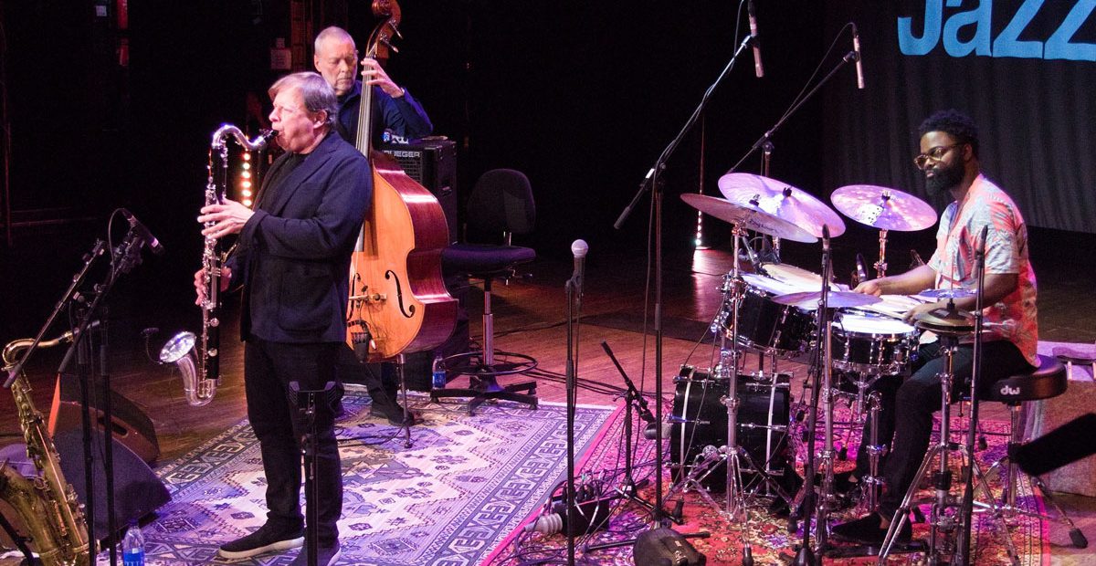 Dave Holland’s quartet KISMET became a trio due to the illness of guitarist Kevin Eubanks, yet the interplay between Holland, saxophonist Chris Potter, and drummer Marcus Gilmore was thrilling. Slim, elegant bass lines and thoughtful solos—each motif developed with clarity—kept the 480-seat old theater spellbound.